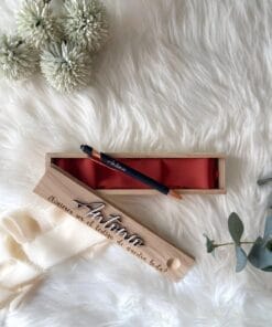 Bolígrafo Grabado para Testigos de Boda Sorprende a tus testigos de boda con este elegante bolígrafo grabado, el detalle perfecto para honrar su apoyo en tu día especial. Presentado en una sofisticada caja de madera, el bolígrafo lleva el nombre grabado y la caja lo lleva en relieve, añadiendo un toque personal y único que será apreciado y recordado por siempre. Ideal como recuerdo y símbolo de gratitud.