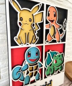 ¡Haz que la habitación de tu peque cobre vida con su Pokémon favorito! Nuestro cuadro multicapa combina varias capas de madera cortadas con precisión para crear un efecto 3D espectacular. Personalízalo con el nombre del niño o niña y elige entre sus personajes favoritos del universo Pokémon. Hecho a mano con madera de alta calidad, es el regalo perfecto para pequeños entrenadores y grandes fans.