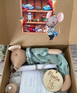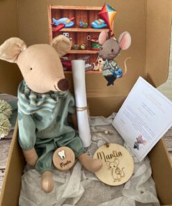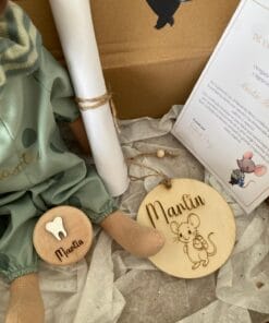Pack personalizado del Ratoncito Pérez Convierte la caída del primer diente en una experiencia mágica e inolvidable con este pack único y lleno de ternura. Diseñado para acompañar a los más peques en este momento tan especial, el set incluye: