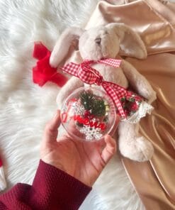 Una bola de Navidad personalizada con el nombre del peque, para decorar el árbol con un toque único y mágico.