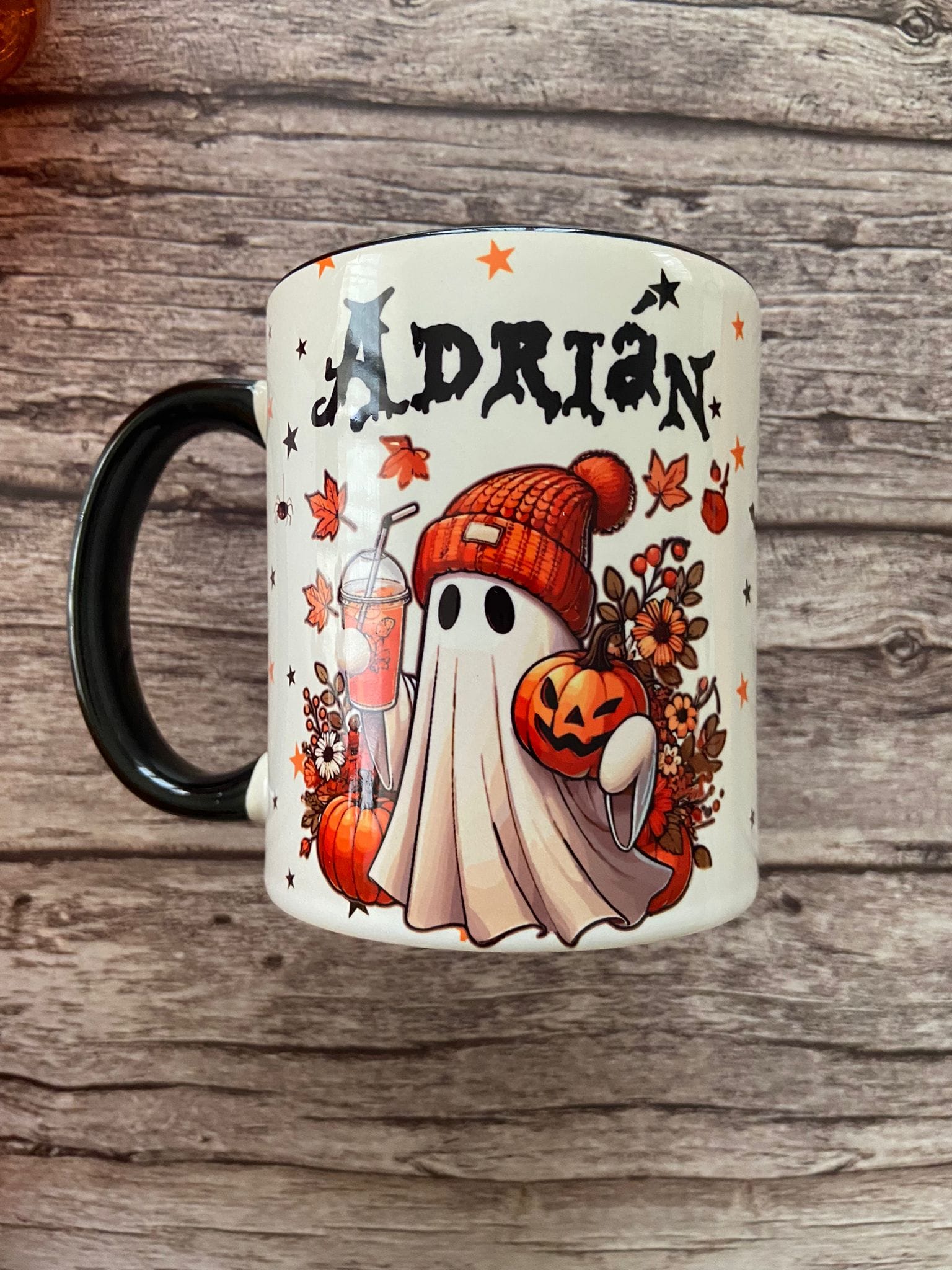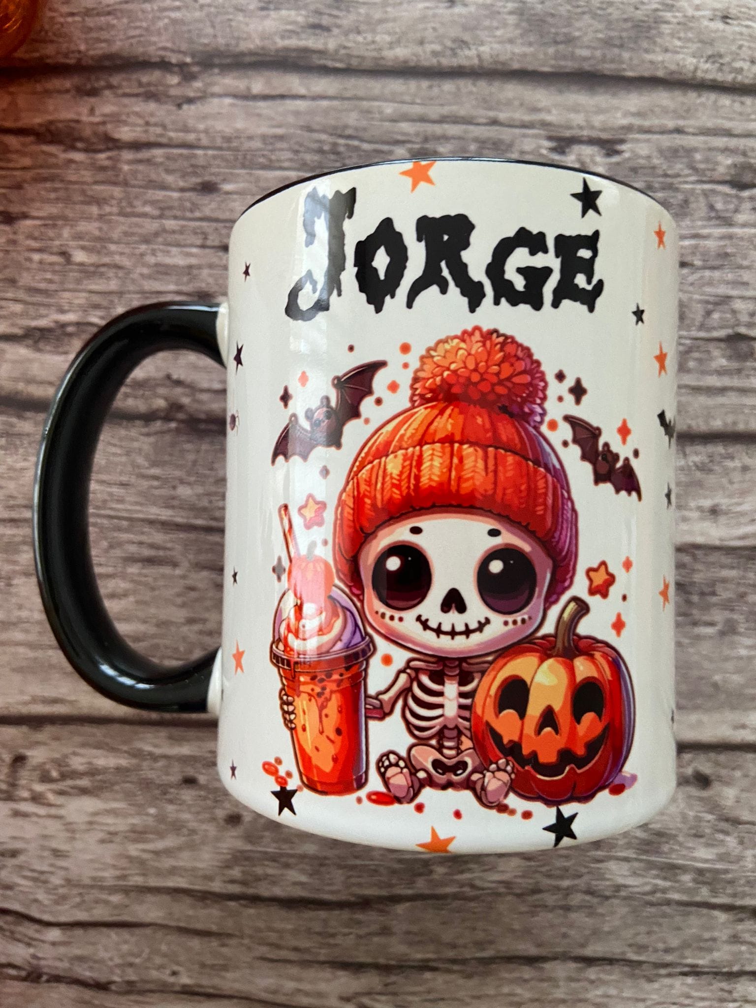 Descubre nuestra taza personalizada de Halloween, el regalo perfecto para esta temporada. Con diseño exclusivo, puedes añadir tu nombre para un toque único.