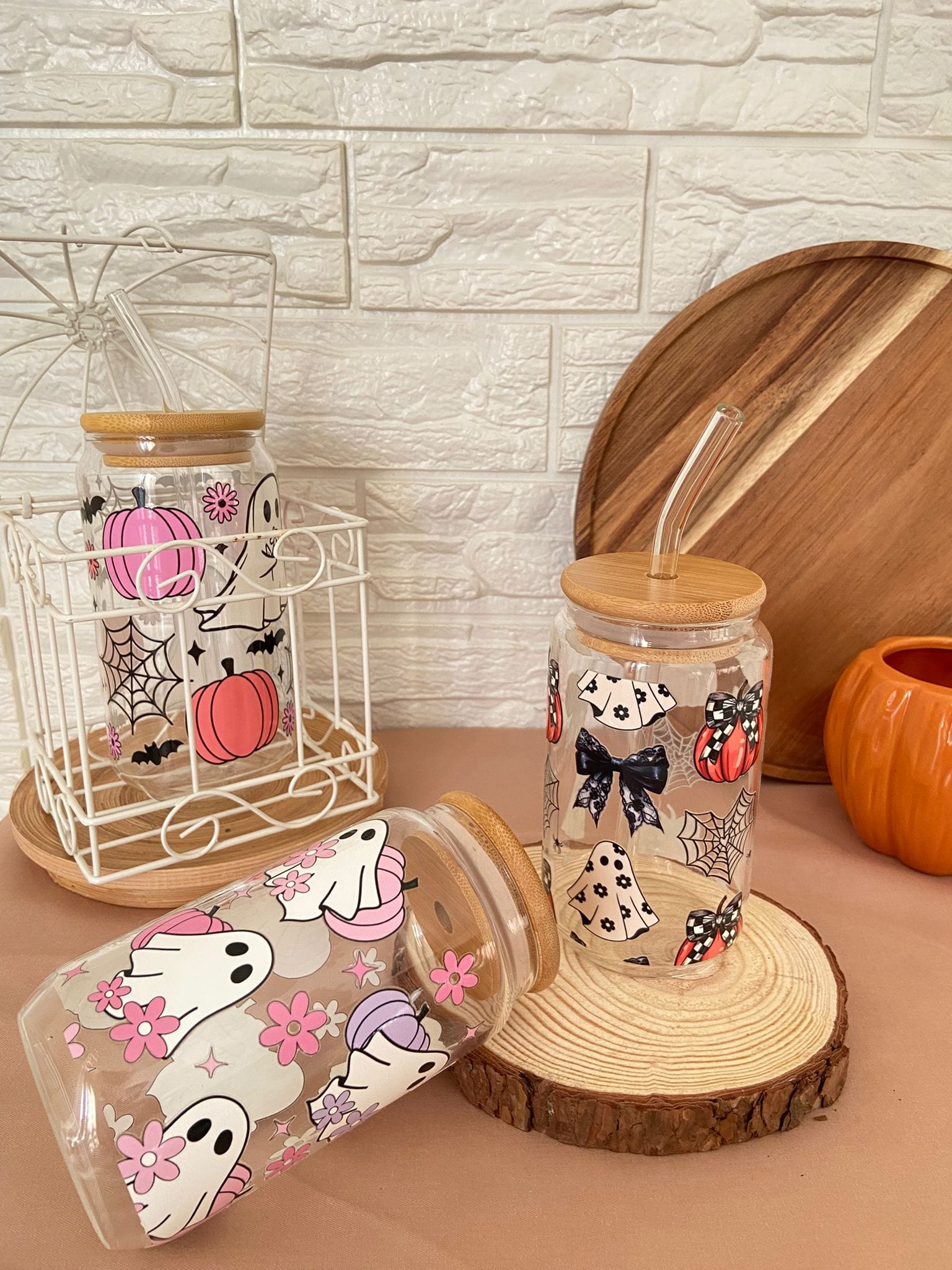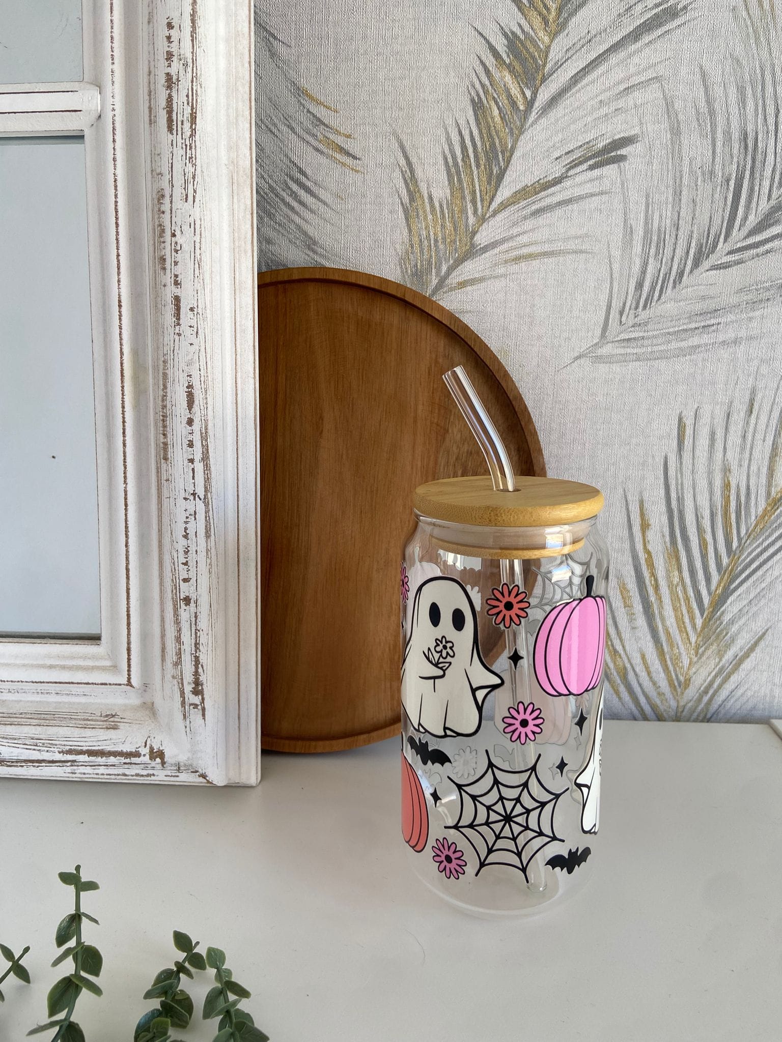 Vaso Halloween con tapa de madera y pajita de cristal Añade un toque espeluznante y elegante a tus bebidas con este vaso tematizado de Halloween. Fabricado en vidrio resistente, incluye una tapa de madera natural y una pajita de cristal reutilizable. Ideal para fiestas, decoraciones o simplemente disfrutar tus bebidas favoritas con estilo. ¡Perfecto para los amantes de lo spooky chic!